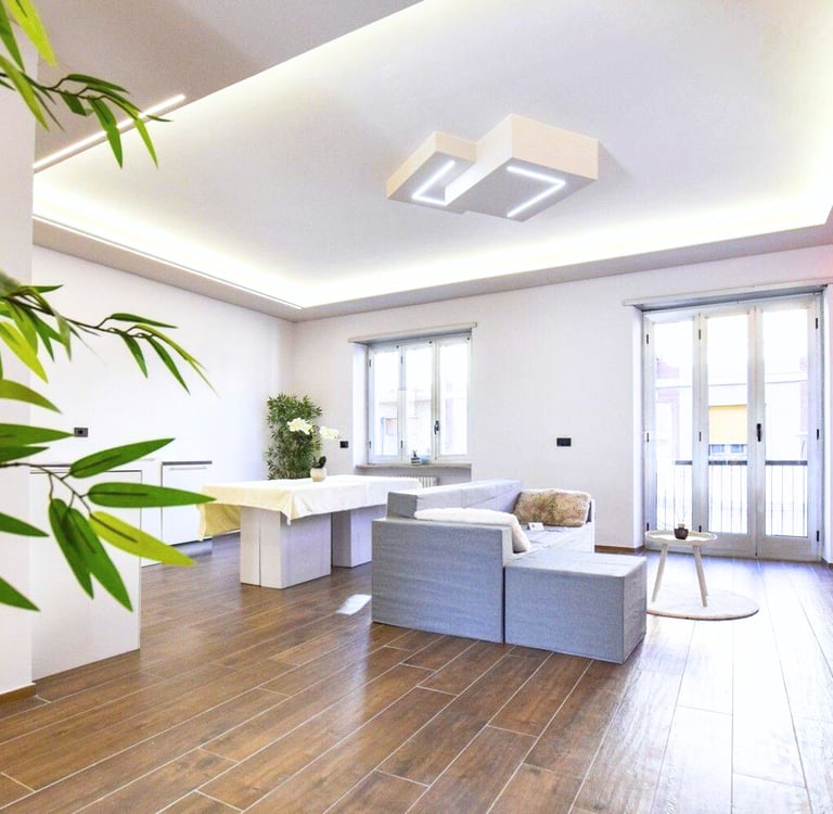 Ampio quadrilocale finemente ristrutturato, pensato per chi desidera comfort contemporaneo, estetica curata e tecnologia che semplifica la vita. La zona giorno è luminosa e razionale; la zona notte è servita da due bagni (secondo bagno ideale per privacy e funzionalità quotidiana).